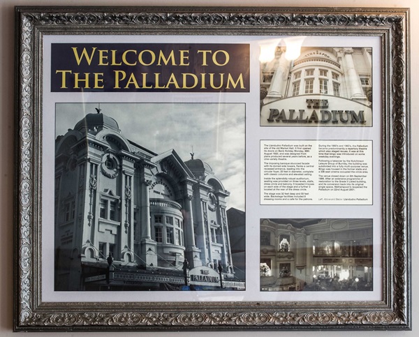 The text reads: The Llandudno Palladium was built on the site of the old Market Hall. It first opened its doors on Bank Holiday Monday, 30 August 1920, and was designed from plans produced several years before, as a cine-variety theatre.